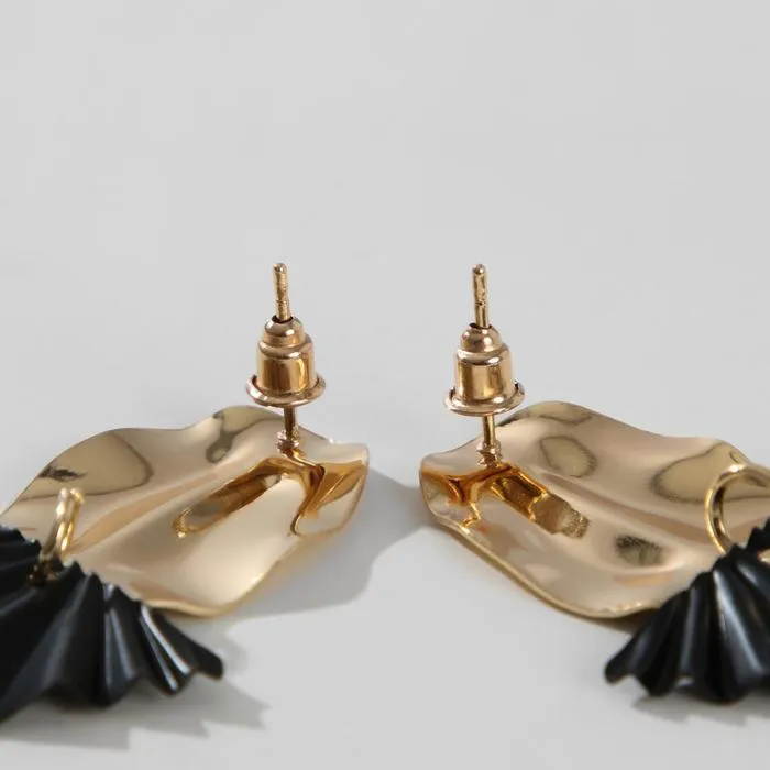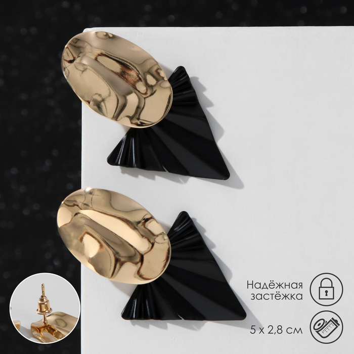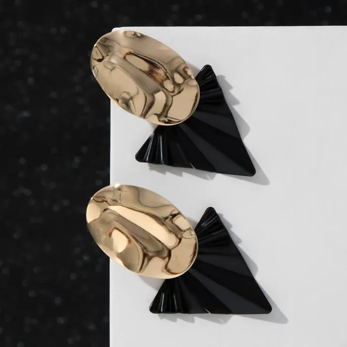 Серьги металл «Тренд» овал и треугольник, цвет чёрный в глянцевом золоте — Характеристики