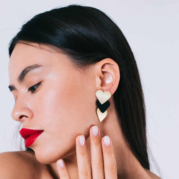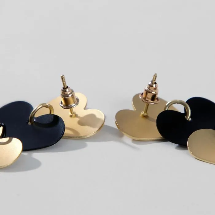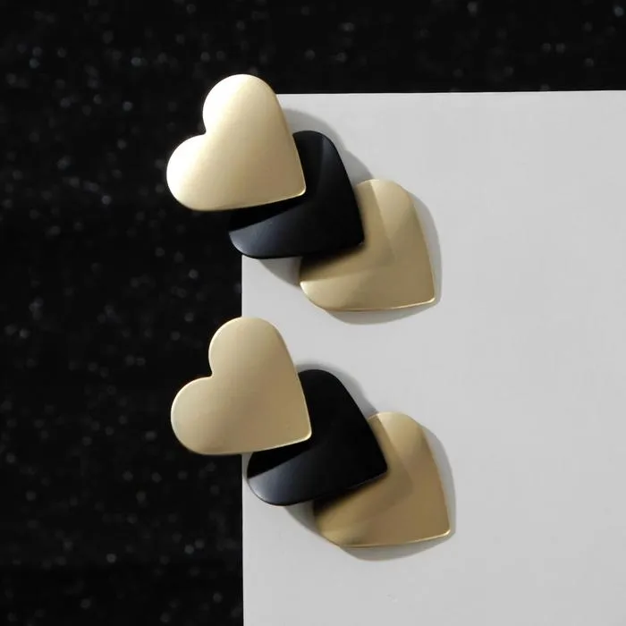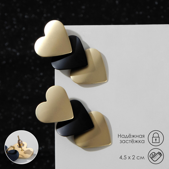 Серьги металл «Тренд» сердечки, цвет чёрно-золотой — Характеристики