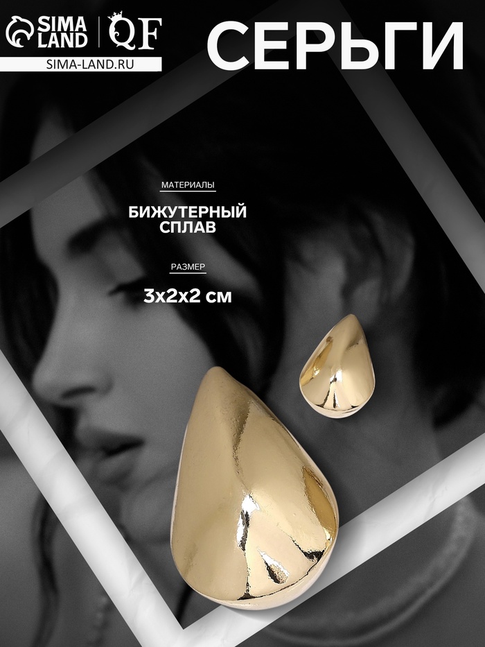Серьги металл «Тринити» широкие, тренд, цвет золото — Характеристики