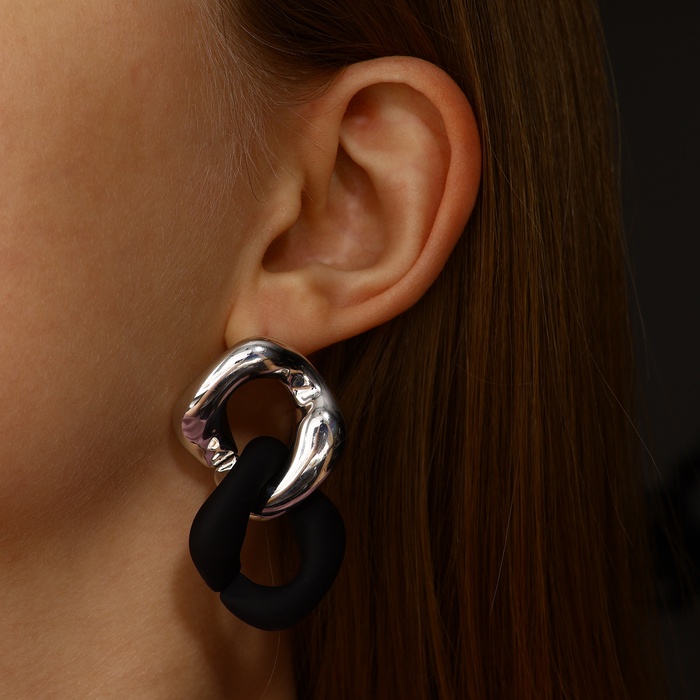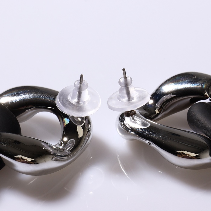 Серьги металл «Цепь» диагональ, 2 полых ромба, цвет серебристо-чёрный — Характеристики