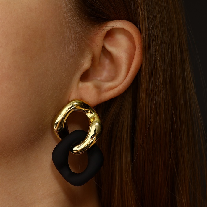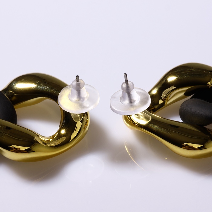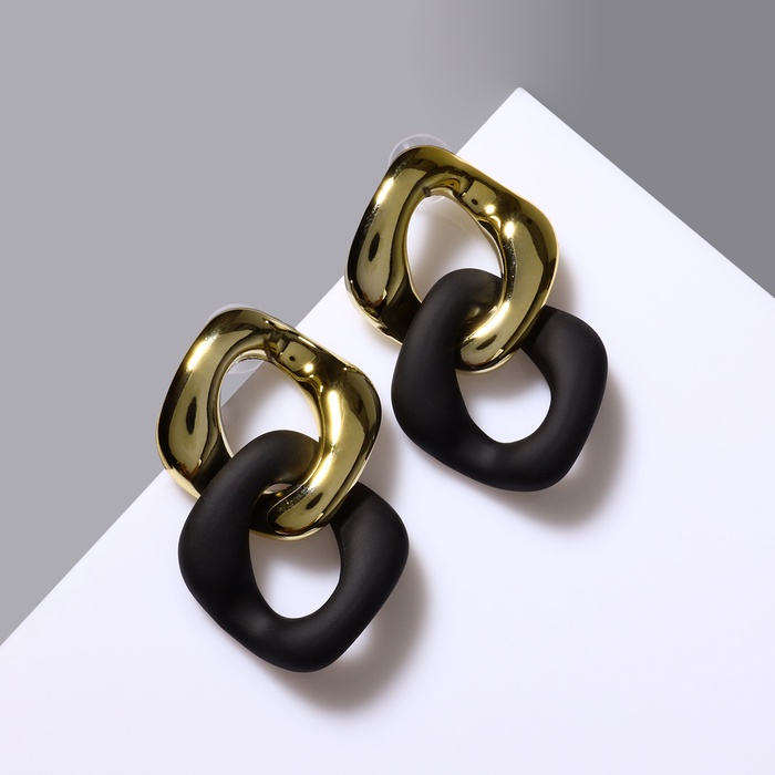 Серьги металл «Цепь» диагональ, 2 полых ромба, цвет золотисто-чёрный — Характеристики