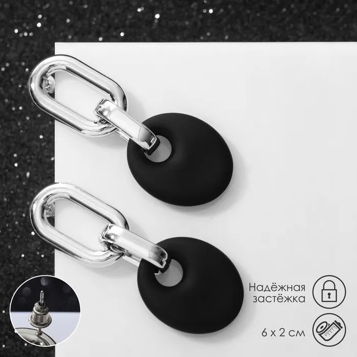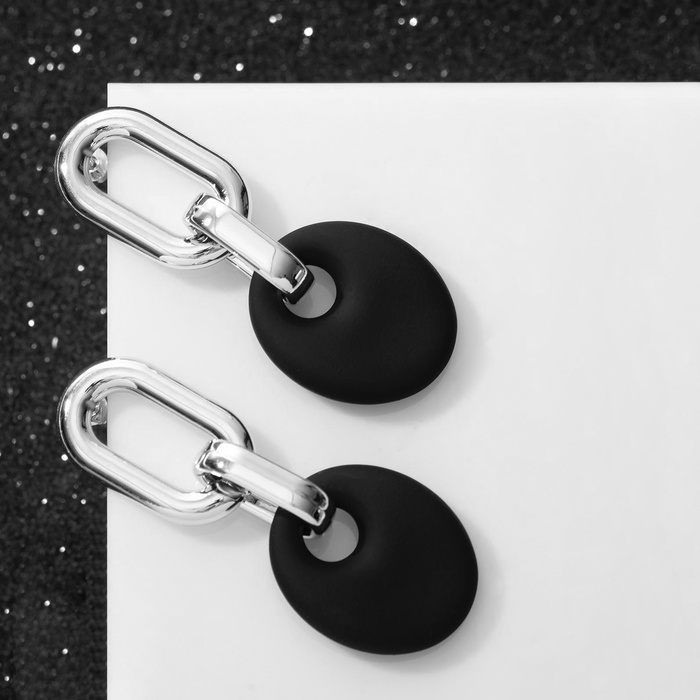 Серьги металл «Цепь» диск, 3 звена, цвет серебристо-чёрный — Характеристики