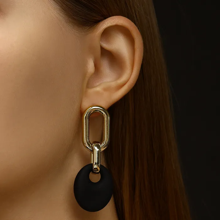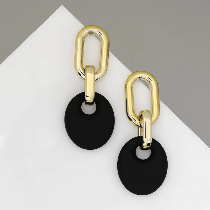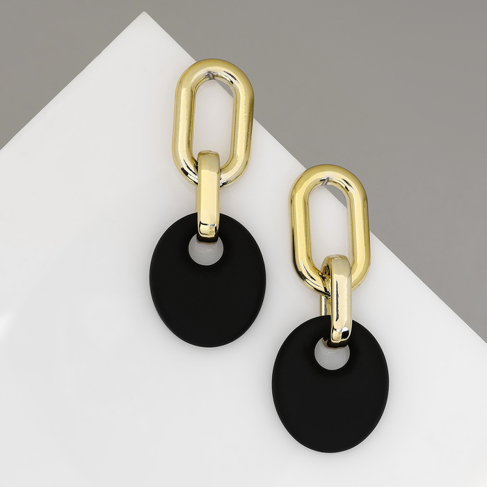 Серьги металл «Цепь» диск, 3 звена, цвет золотисто-чёрный — Характеристики