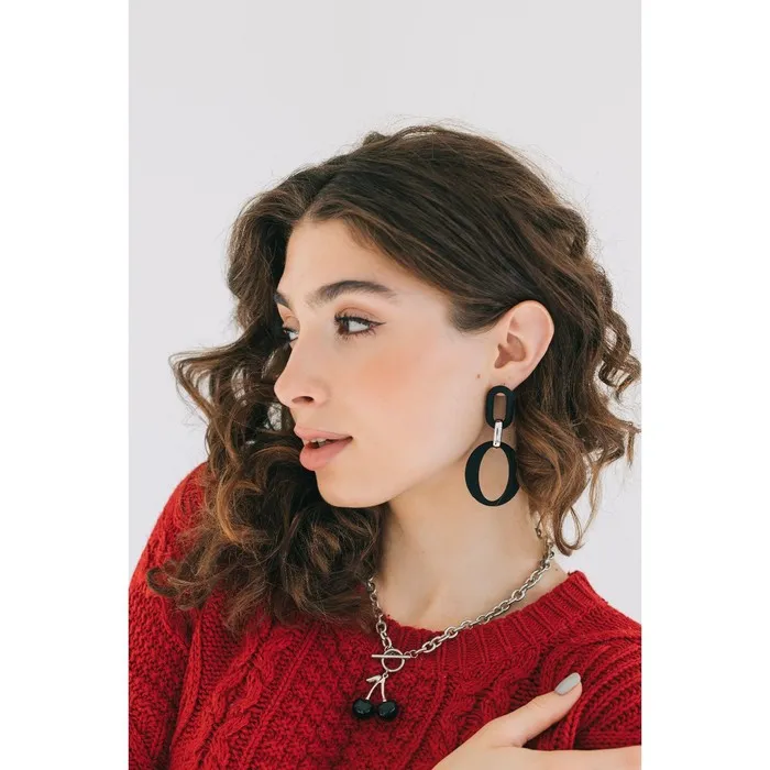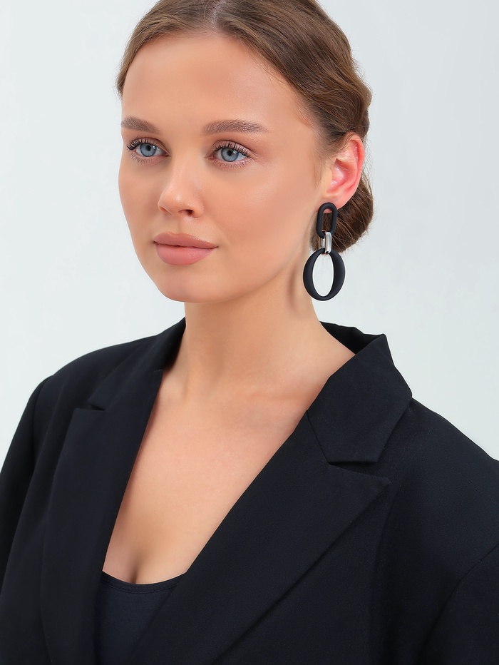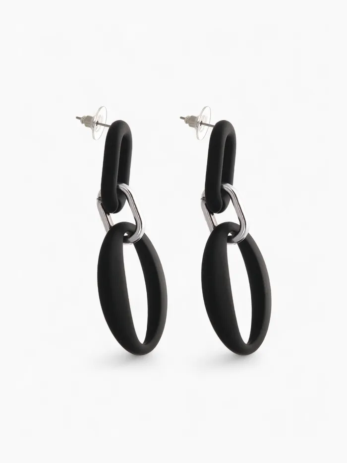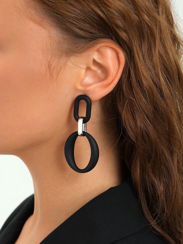 Эти серьги с элегантной цепочкой, где сочетаются кольцо и овал в трёх звеньях, привносят в образ утончённый минимализм и современную геометрию. Выполненные в серебристо-чёрном цвете из прочного металла, они подчёркивают индивидуальность и добавляют нотку абстрактного стиля, идеально подходя для женщин, ценящих лёгкость и изысканность.