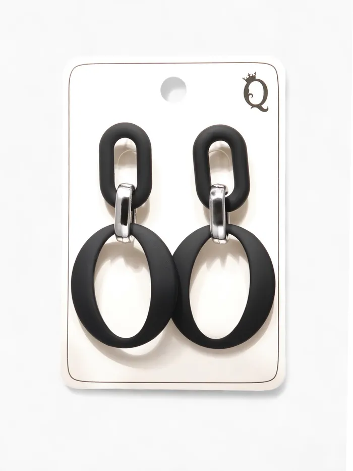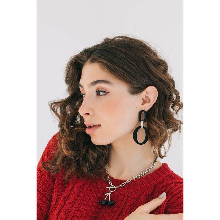 Серьги металл «Цепь» кольцо и овал, 3 звена, цвет серебристо-чёрный — Характеристики