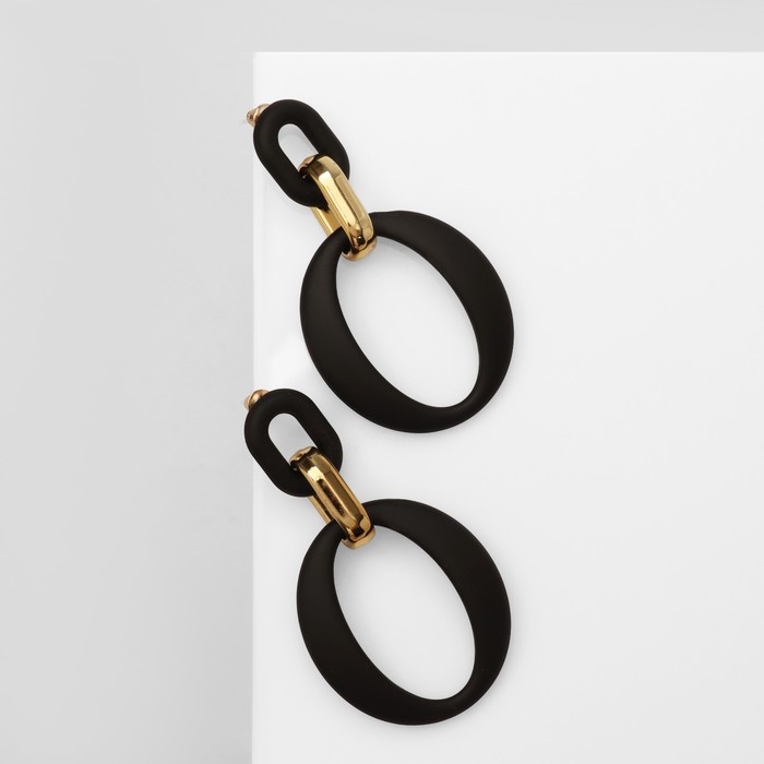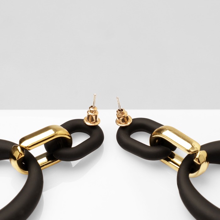 Серьги металл «Цепь» кольцо и овал, 3 звена, цвет золотисто-чёрный — Характеристики