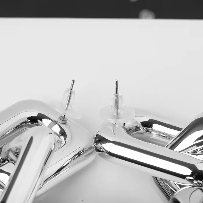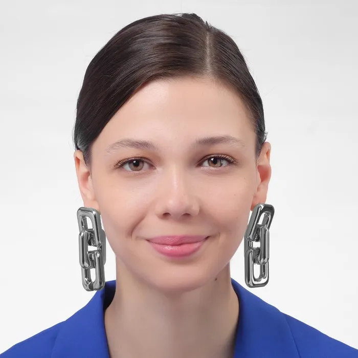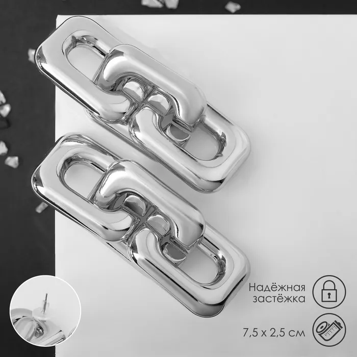 Серьги металл «Цепь» прямые углы, 3 звена, цвет серебро — Характеристики