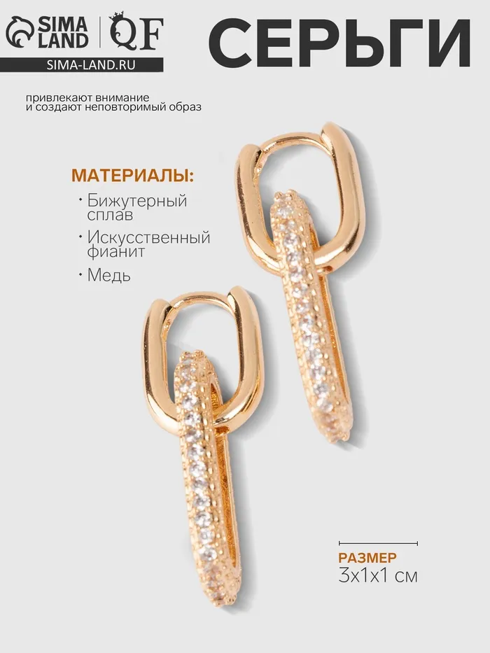 Серьги металл «Цепи» два звена, цвет белый в золоте — Характеристики