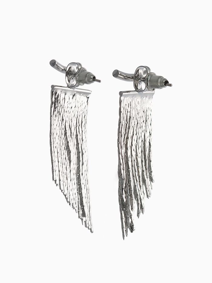 Серебристые серьги с эффектом «цепного водопада» воплощают современный минимализм и изящество в каждом движении. Их длина 4 см создаёт лёгкий и воздушный акцент, который гармонично дополняет образ, не перегружая его деталями.