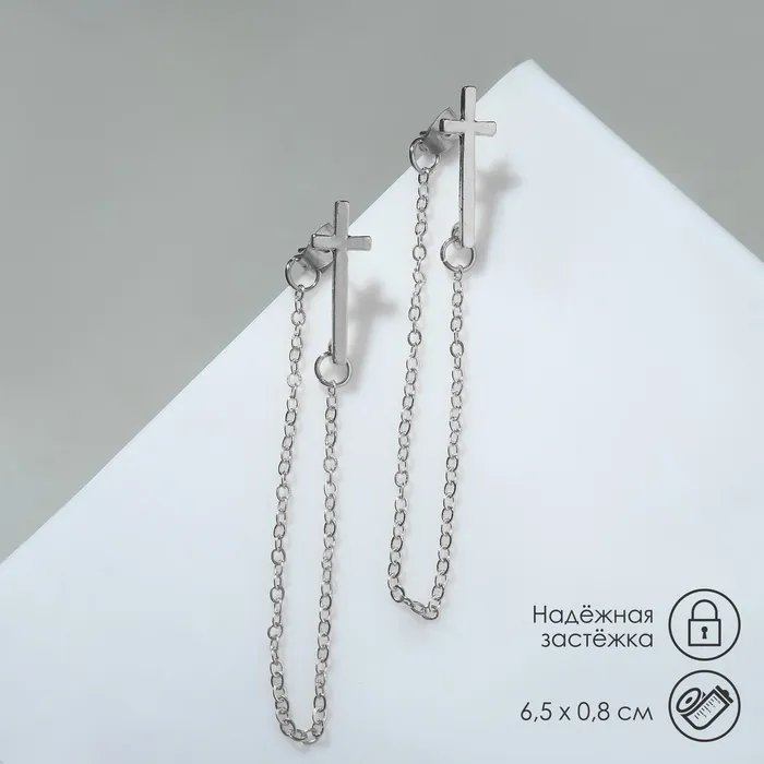 Серьги металл «Цепочки» крест, цвет серебро — Характеристики
