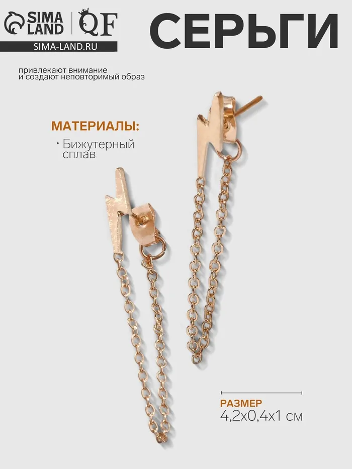 Серьги металл «Цепочки» молния, цвет золото — Характеристики
