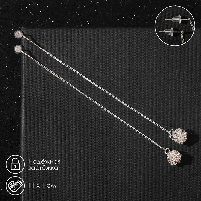 Серьги металл «Цепочки» шарики, цвет серебро — Характеристики