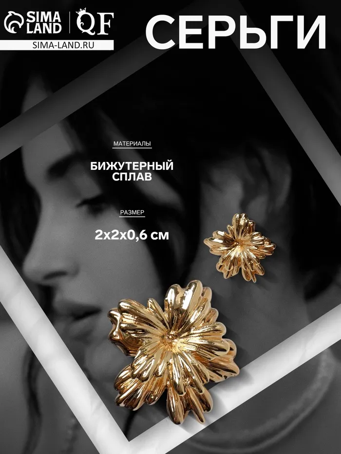 Серьги металл «Цветок» двойной, цвет золото — Характеристики