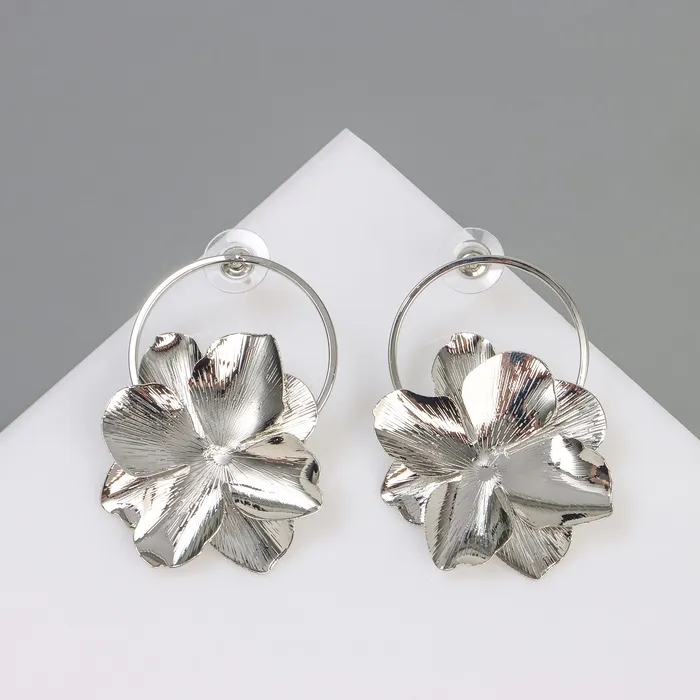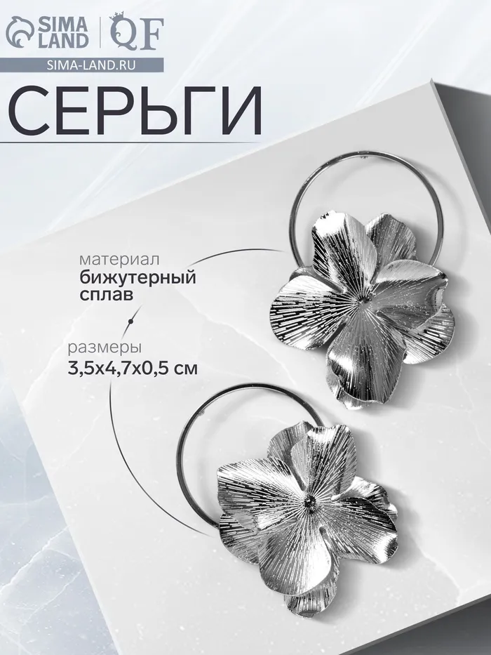 Серьги металл «Цветок» минор, цвет серебро — Характеристики
