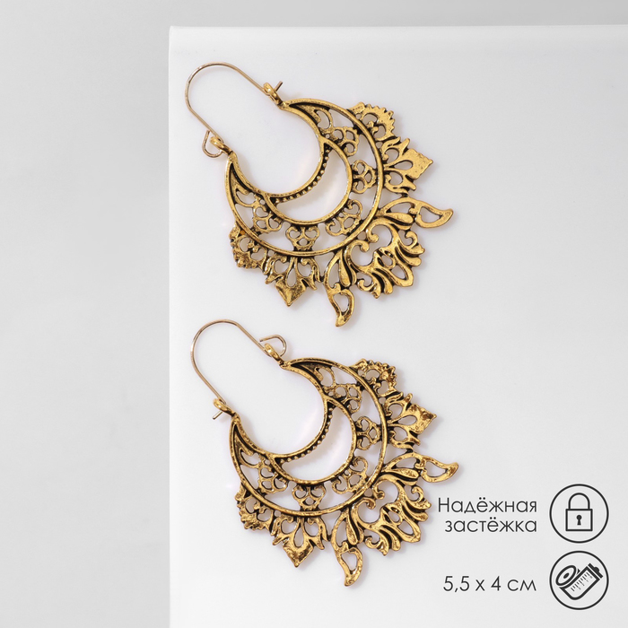 Серьги металл «Восток» лотос крупный, цвет чернёное золото — Характеристики