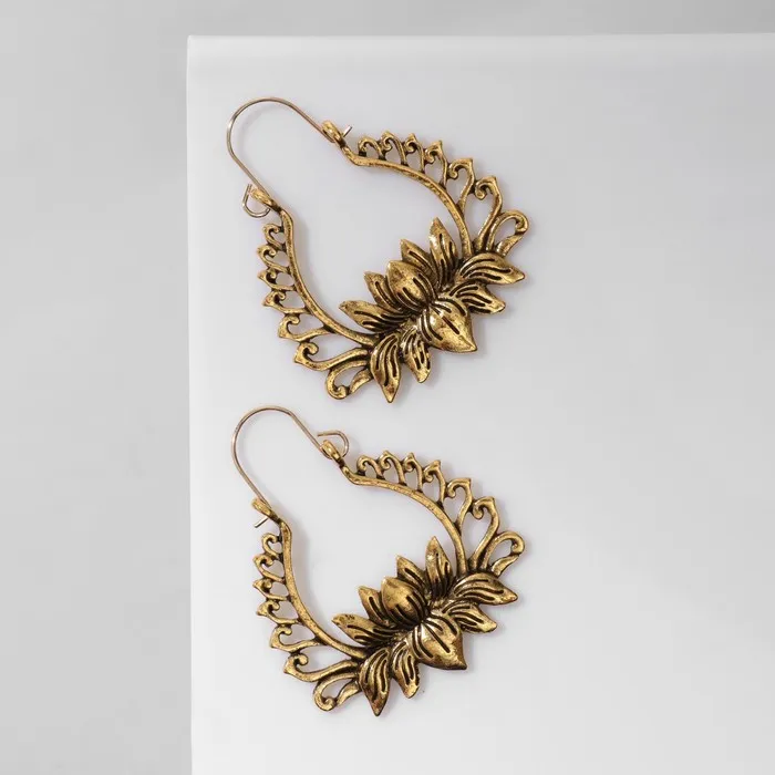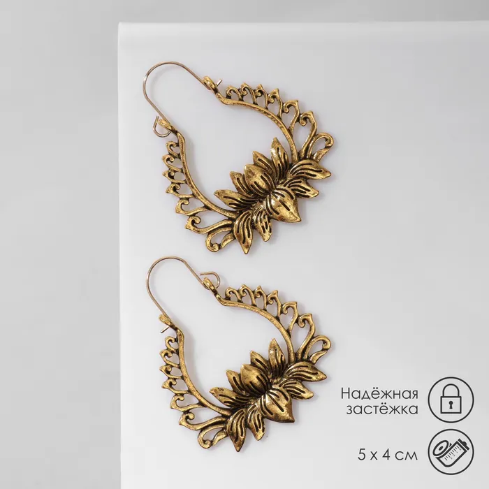 Серьги металл «Восток» лотос, цвет чернёное золото — Характеристики