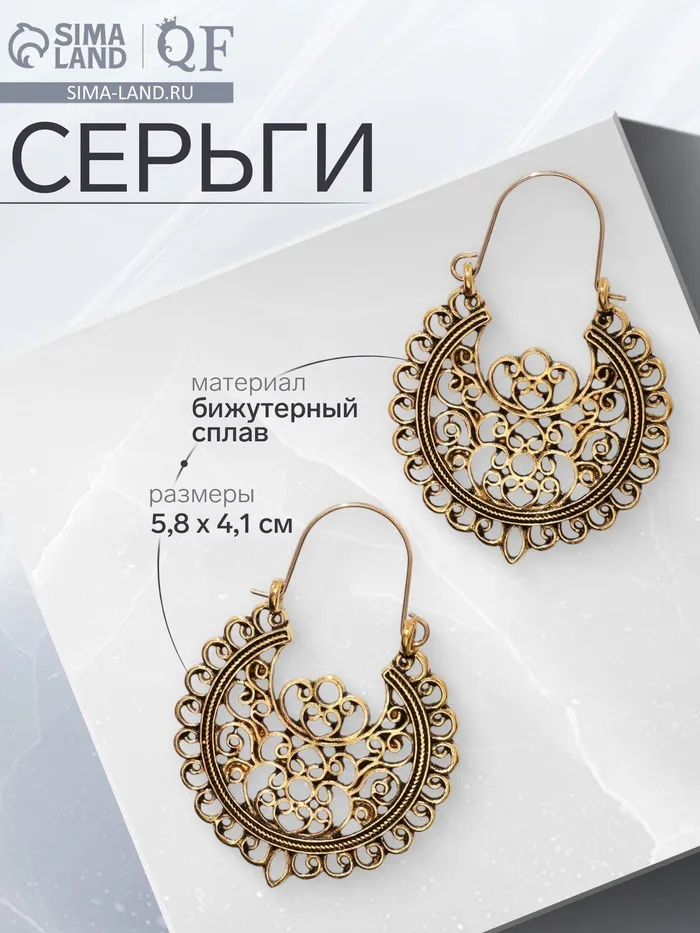 - Элегантный дизайн: уникальные восточные узоры придают серьгам особую изысканность, делая их идеальным выбором для любителей оригинальных аксессуаров.