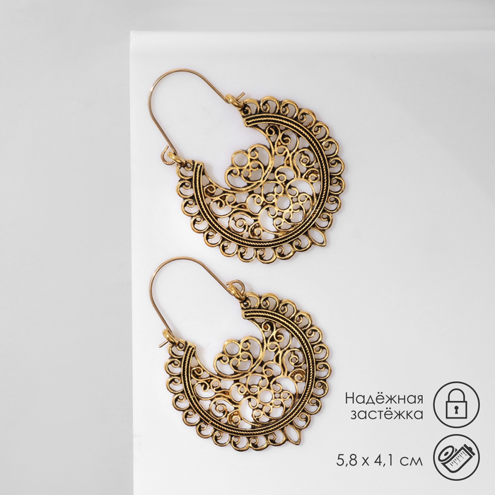 Серьги металл «Восток» узоры, цвет чернёное золото — Характеристики
