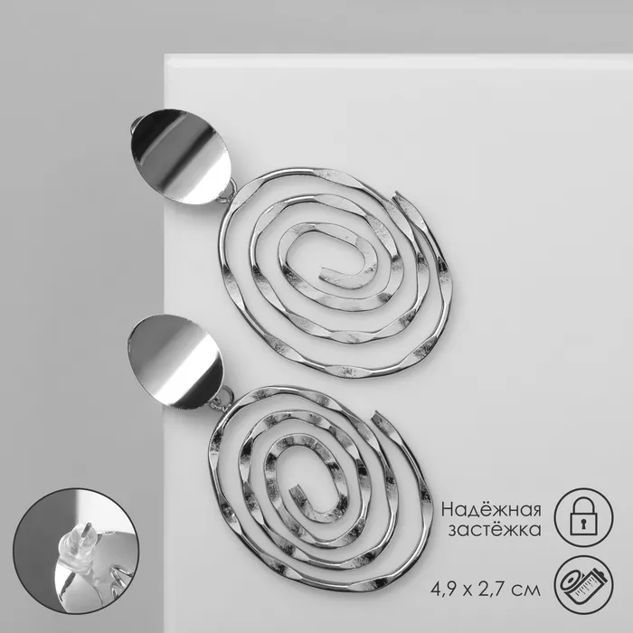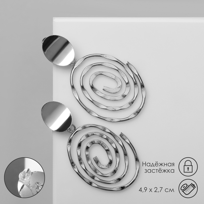 Серьги металл «Врата» два овала, цвет серебро — Характеристики