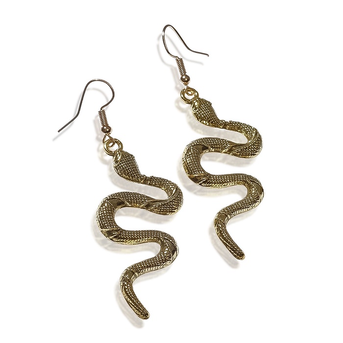 Изогнутые серьги в форме змеи, выполненные из металла с эффектом чернёного золота, создают атмосферу загадочности и утончённой силы. Длина 6,5 см подчёркивает изящность и выразительность образа, а плавные линии дизайна придают украшению органичную динамику, словно оживляя его.