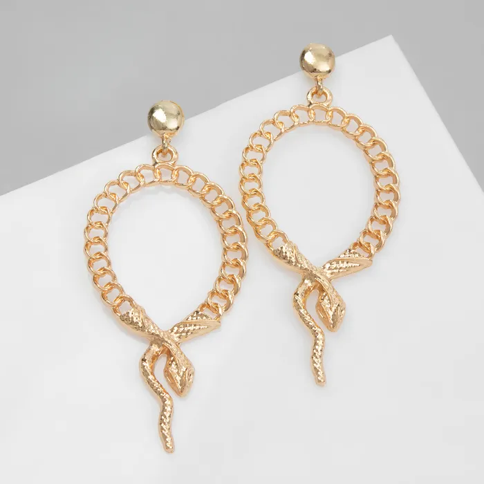 Серьги металл «Змея» плетение, цепь, цвет золото — Характеристики
