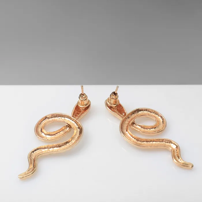 Изящные серьги с оригинальным узором в виде змеи воплощают в себе силу и загадочность, присущие этому символу. Их длина 4,5 см и золотистый металлический оттенок создают гармоничный баланс между выразительностью и элегантностью, делая украшение универсальным для любого образа.