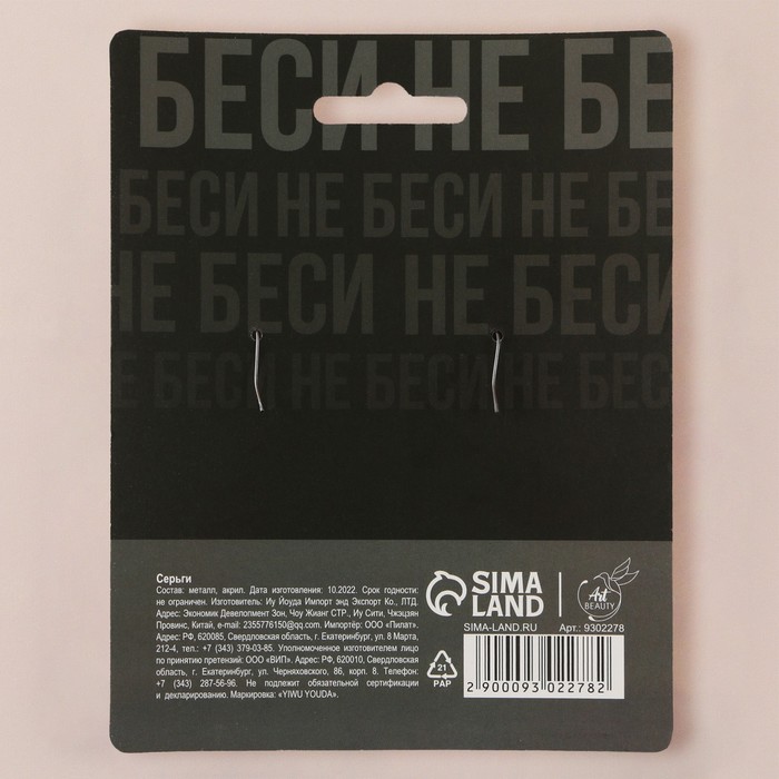 Серьги выполнены из акрила и бижутерного сплава, которые прослужат вам безопасно и долго.