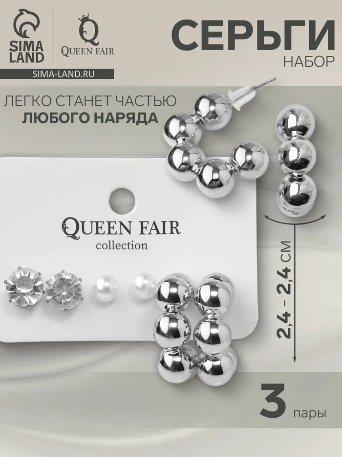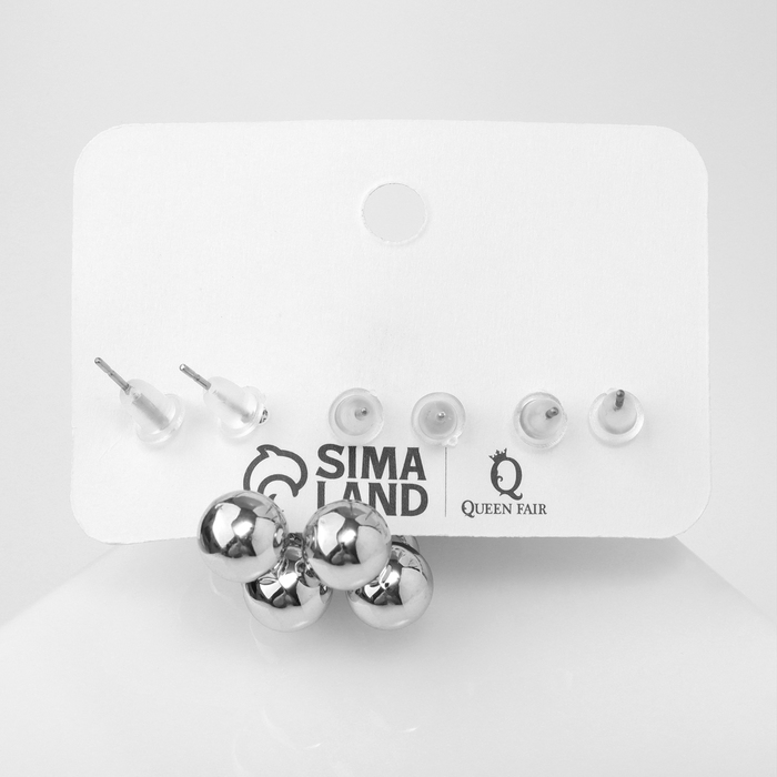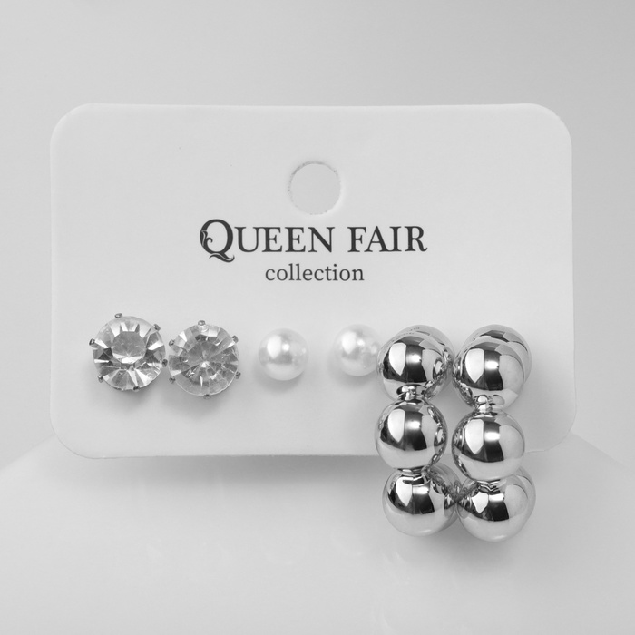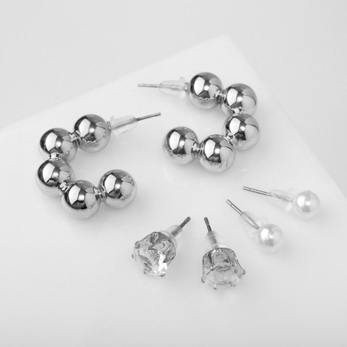 Серьги набор 3 пары «Топ» бьюти, цвет белый в серебре — Характеристики
