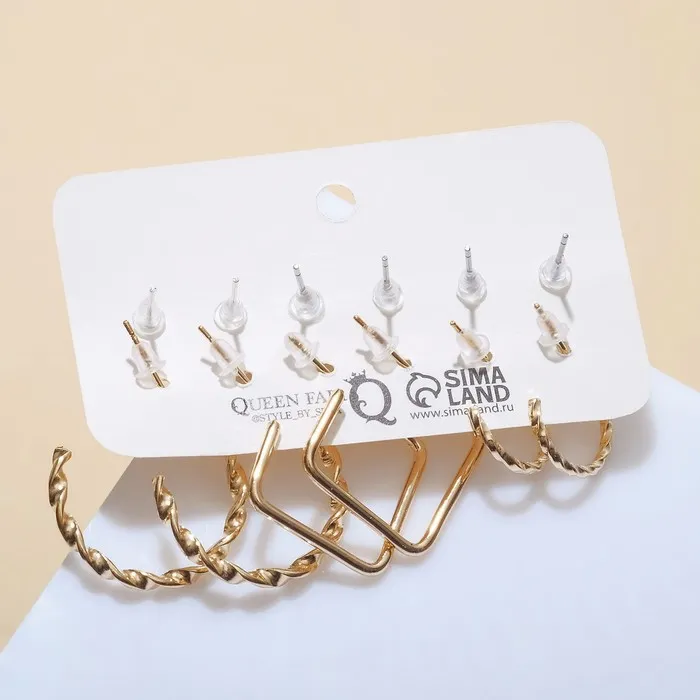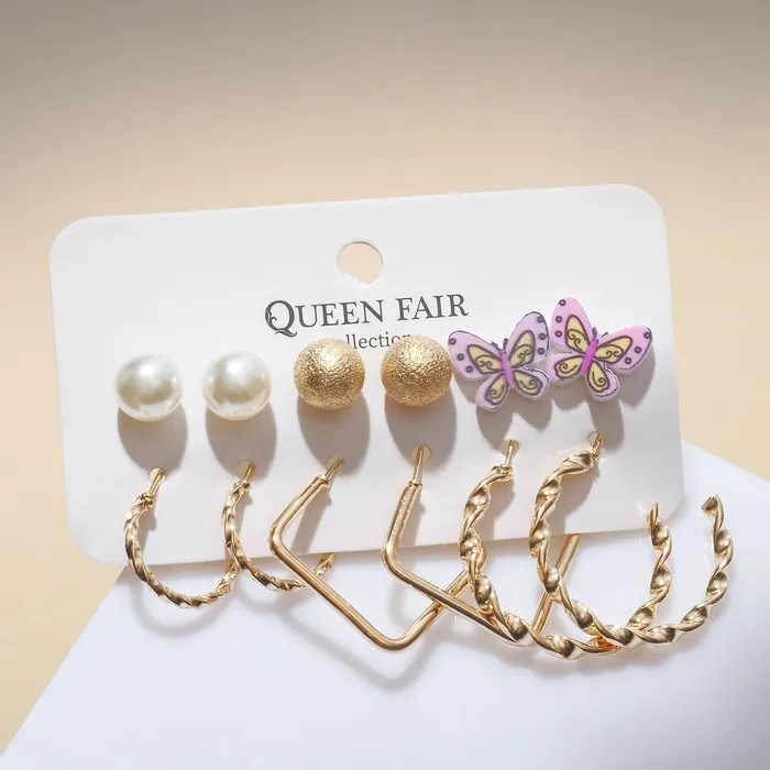 Серьги набор 6 пар «Ассорти» бабочки, цвет бело-розовый в золоте — Характеристики