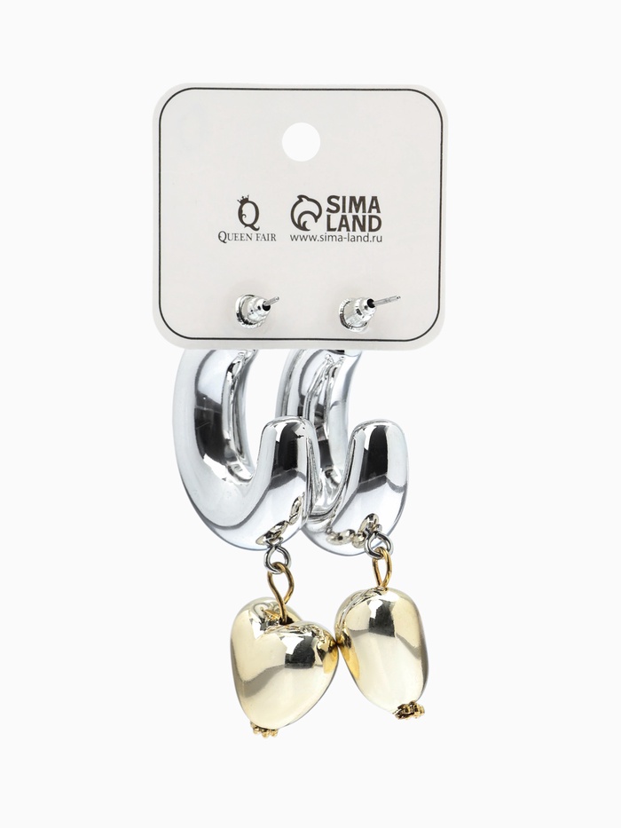 Серьги «Новый стиль. Сердечки», d=3 см, цвет серебристо-золотистый — Характеристики
