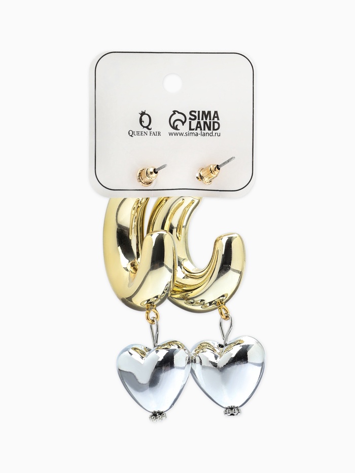 Серьги «Новый стиль. Сердечки», d=3 см, цвет золото-серебристый — Характеристики