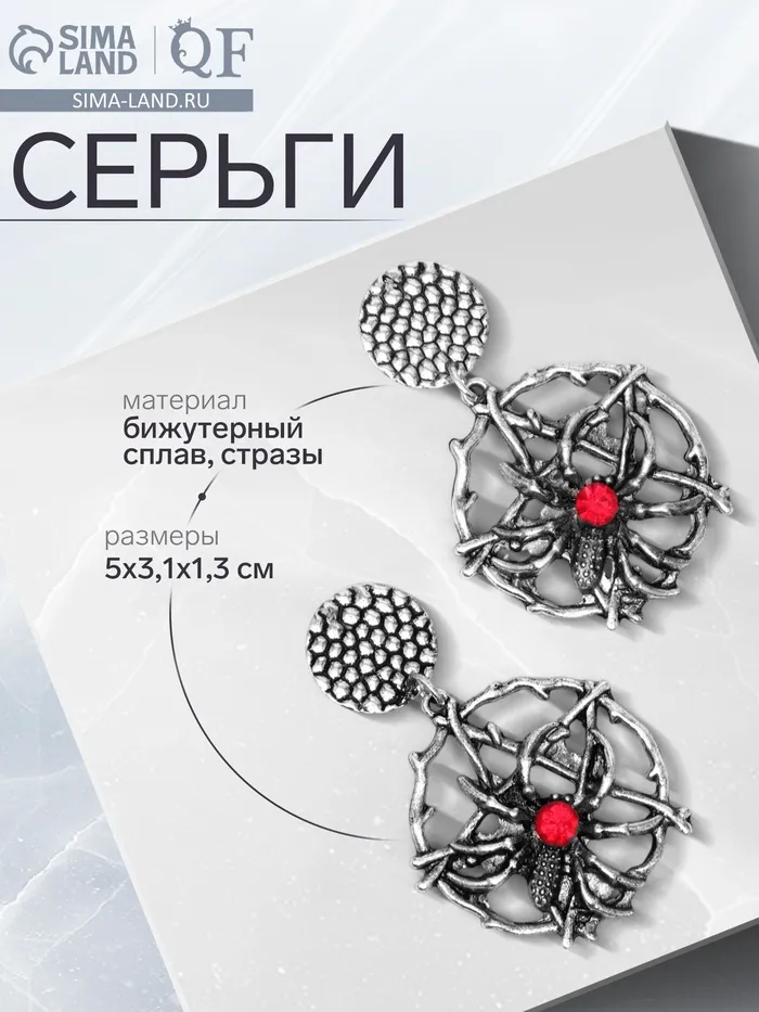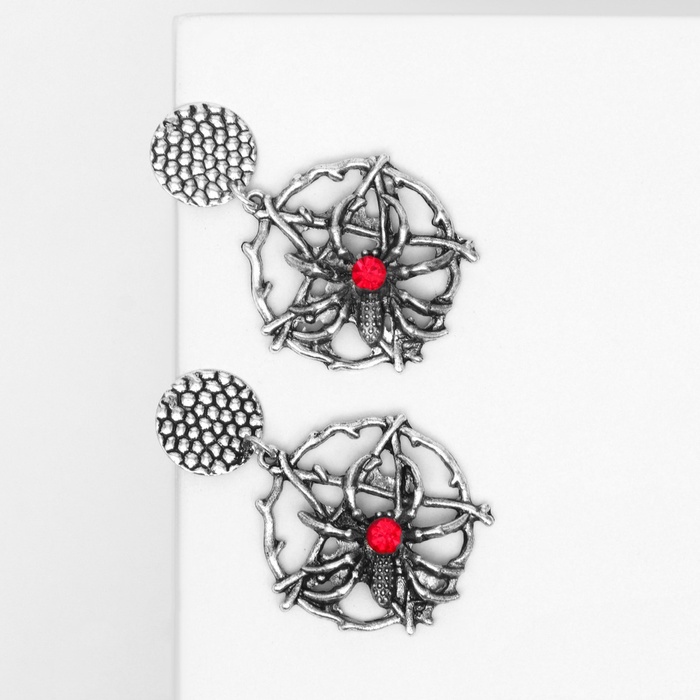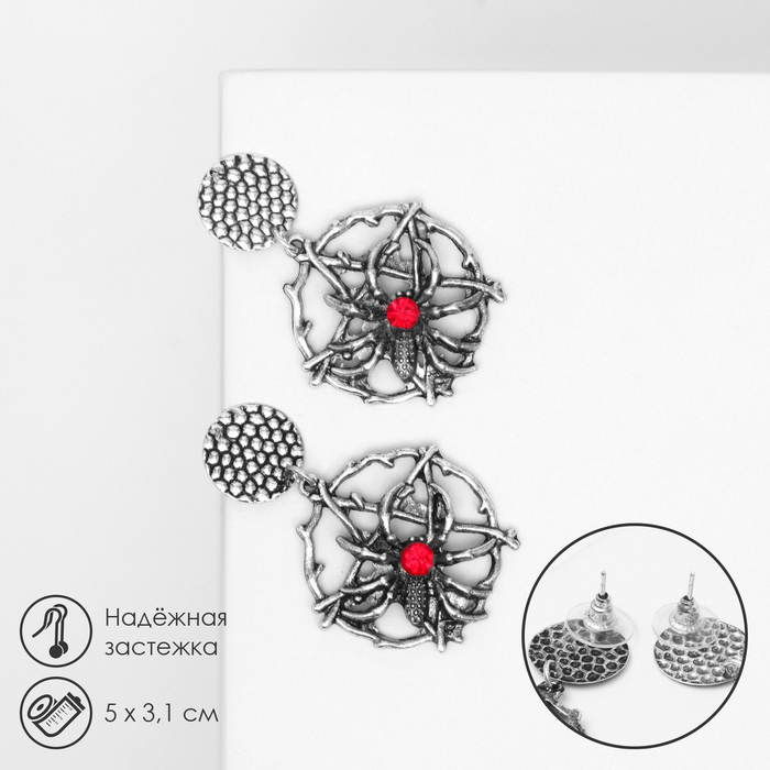 Серьги «Пауки», цвет красный в чернёном серебре — Характеристики