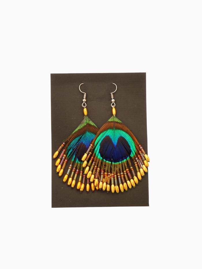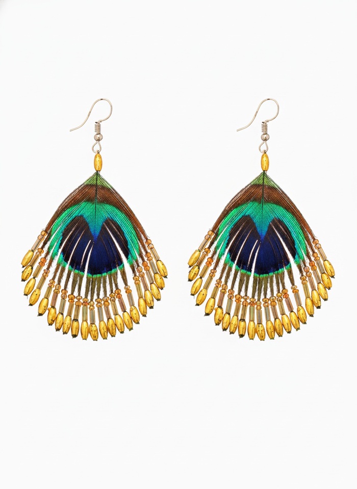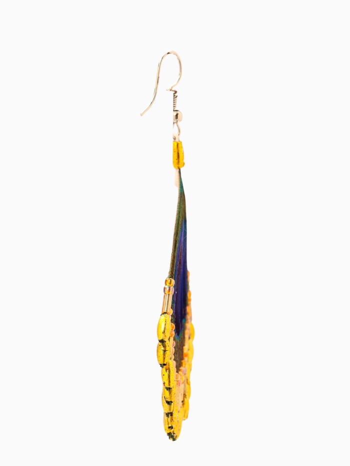 Яркие женские серьги в форме павлиньих перьев длиной 8 см наполнены солнечным светом и радостью. Глубокий желтый оттенок создаёт ощущение тепла и гармонии, моментально поднимая настроение своей обладательнице. Серебристые детали добавляют легкости и воздушности дизайну, превращая простой аксессуар в настоящее произведение искусства.