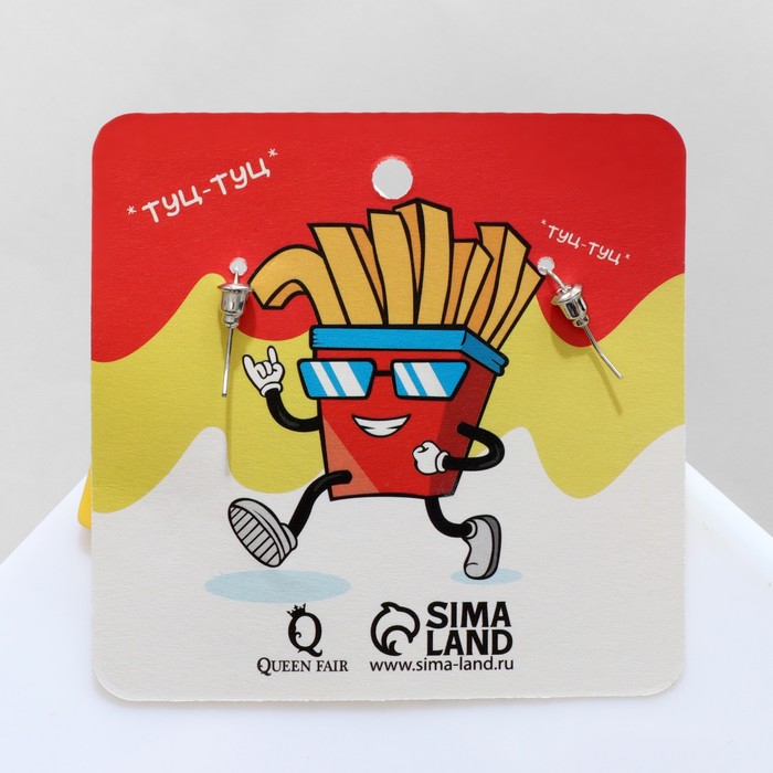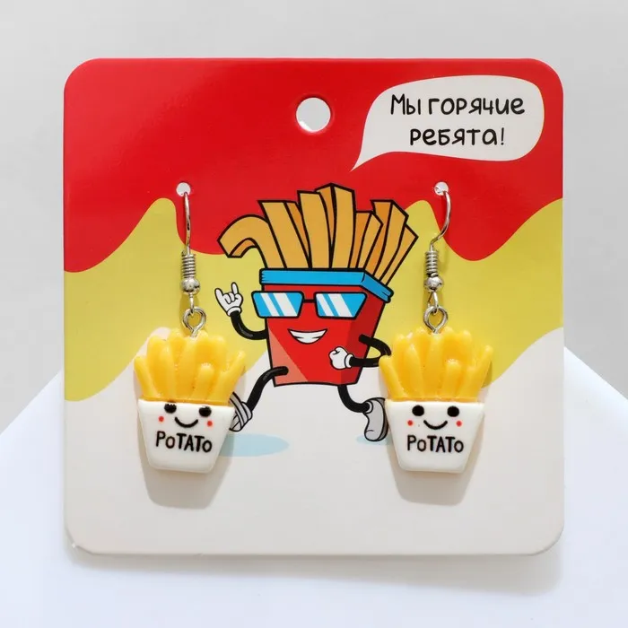 Серьги пластик «Фри» картошка, цветные в серебре — Характеристики