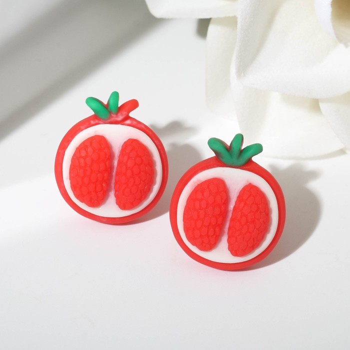 Небольшие серьги с красно-белыми элементами на серебристой металлической основе — лаконичное украшение длиной 2,3 см для женщин и девочек. Дизайн вдохновлён ягодной тематикой, добавляя свежести и яркости в повседневный образ.