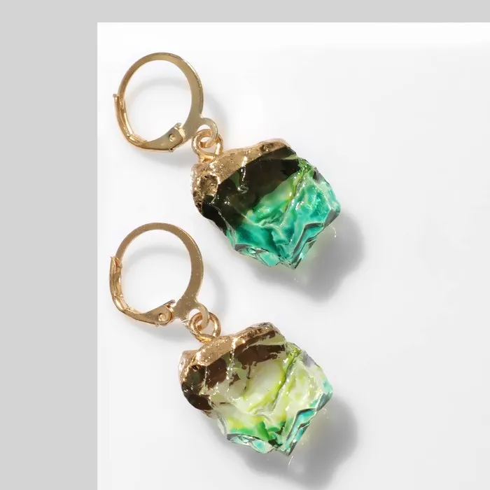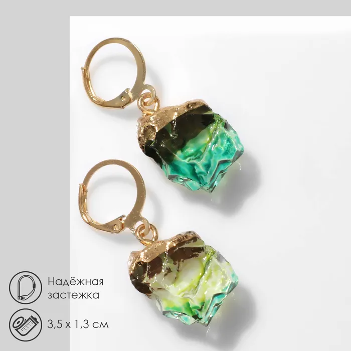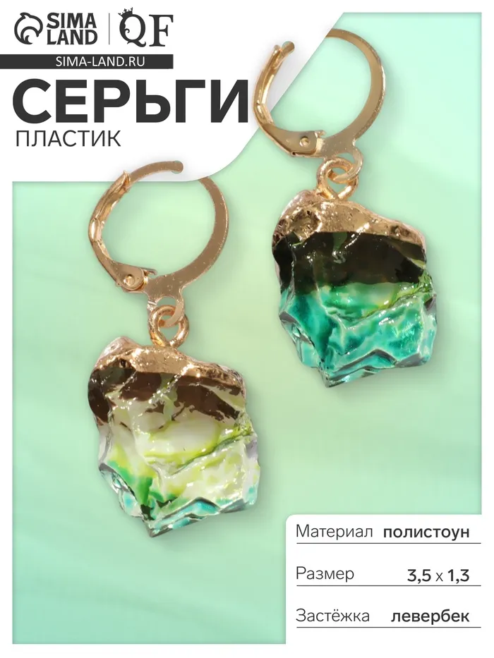 Серьги пластик «Камни» градиент, цвет сине-зелёный в золоте — Характеристики