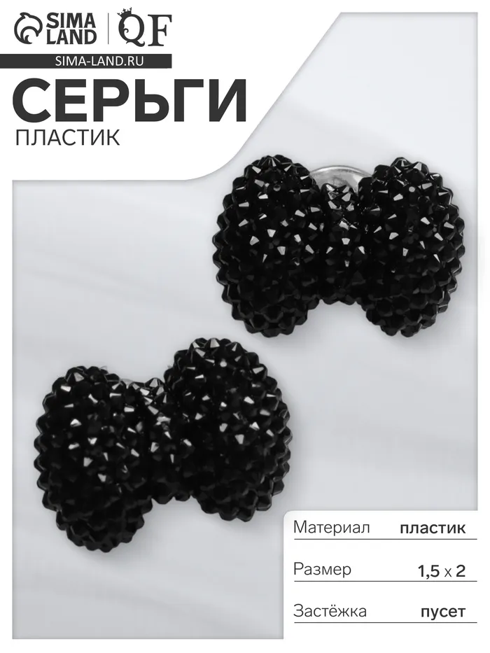 Серьги пластик «Карамель» бант, цвет чёрный — Характеристики
