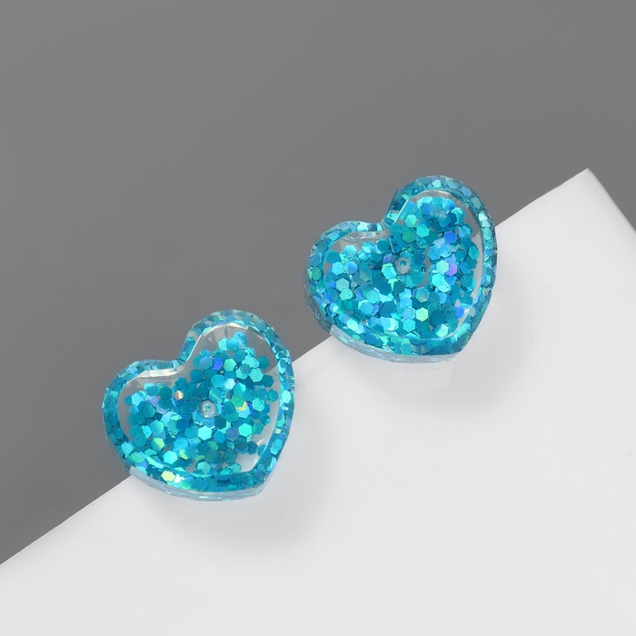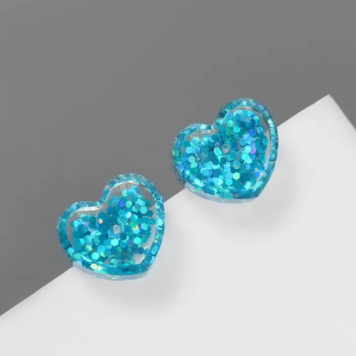Серьги пластик «Карамель» сердце конфетти, цвет голубой — Характеристики