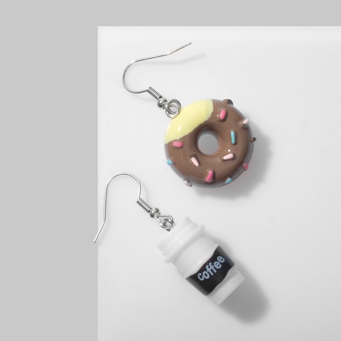 Серьги пластик «Кофе с пончиком», цветные в серебре — Характеристики