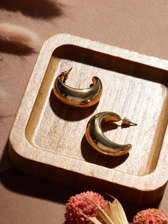 Серьги с золотистым оттенком и изящным круглым дизайном в стиле минимализма — идеальное украшение для тех, кто ценит лаконичность и современную элегантность. Диаметр 3 см делает их заметным, но при этом лёгким акцентом, который гармонично дополняет любой образ.