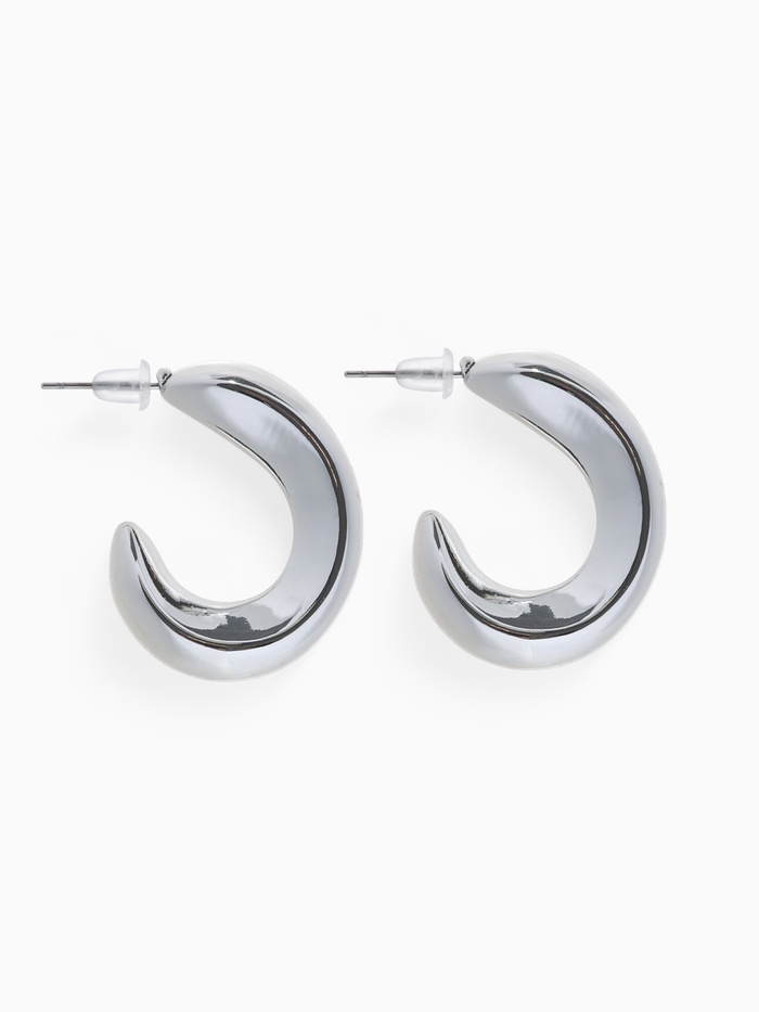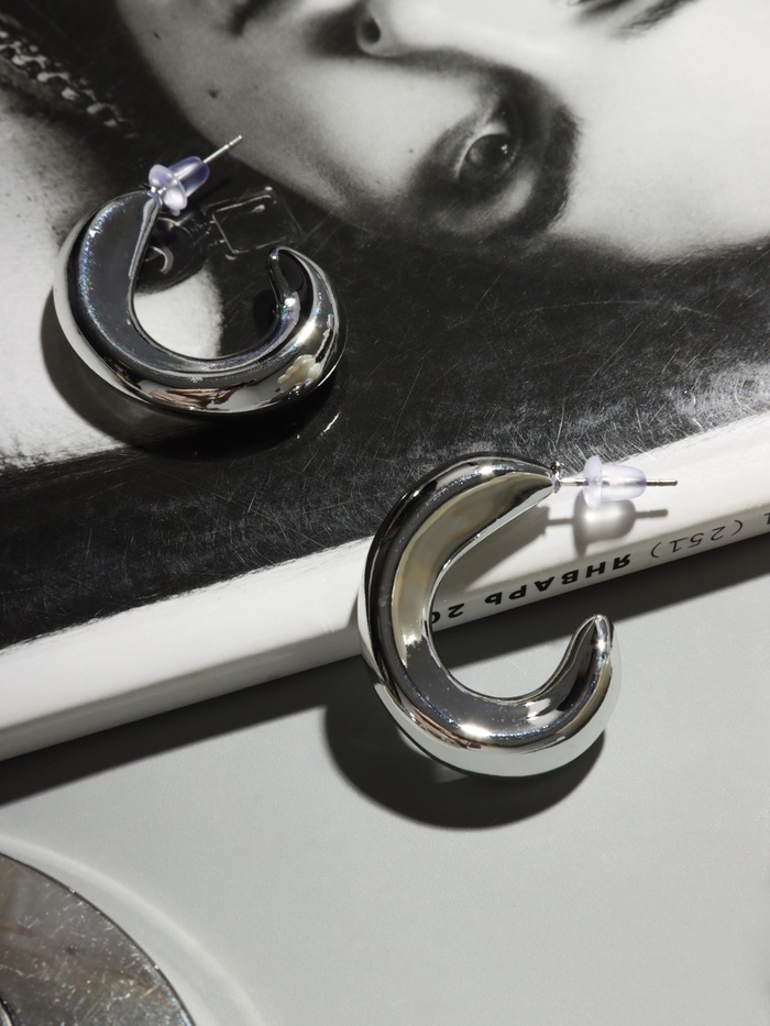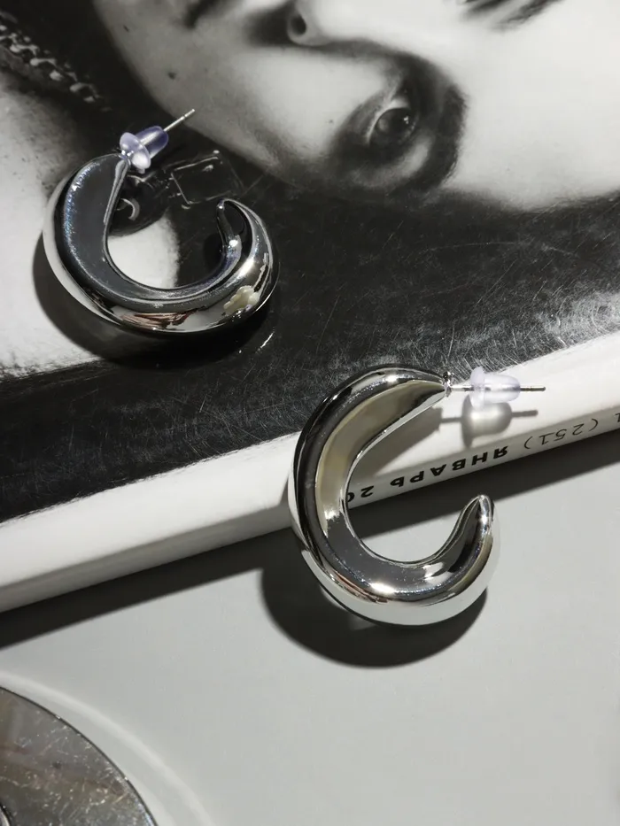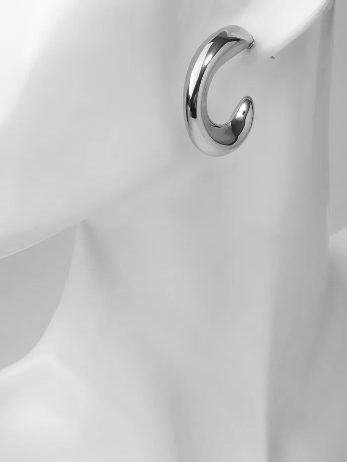Серьги с серебристым оттенком воплощают современный минимализм и лёгкость в образе. Диаметр 2,5 см создаёт выразительный, но сдержанный акцент, который гармонично дополнит как повседневный, так и праздничный наряд.