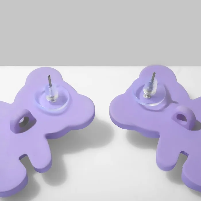 Сиреневые серьги с изображением милых мишек и весёлыми смайликами создают настроение лёгкости и радости, добавляя игривый акцент в любой образ. Их компактный размер 3,5 см делает украшение удобным для повседневного ношения, а яркий цвет и оригинальный дизайн подчеркнут вашу индивидуальность.