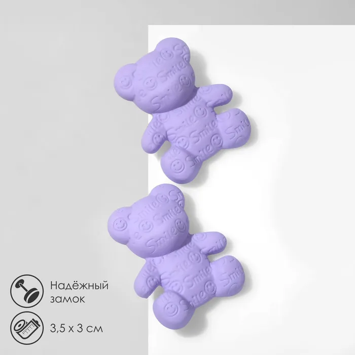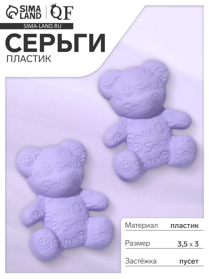 Серьги пластик «Мишки» со смайликами, цвет сиреневый — Характеристики
