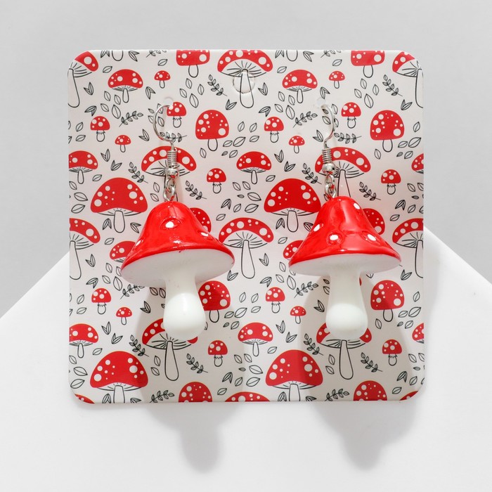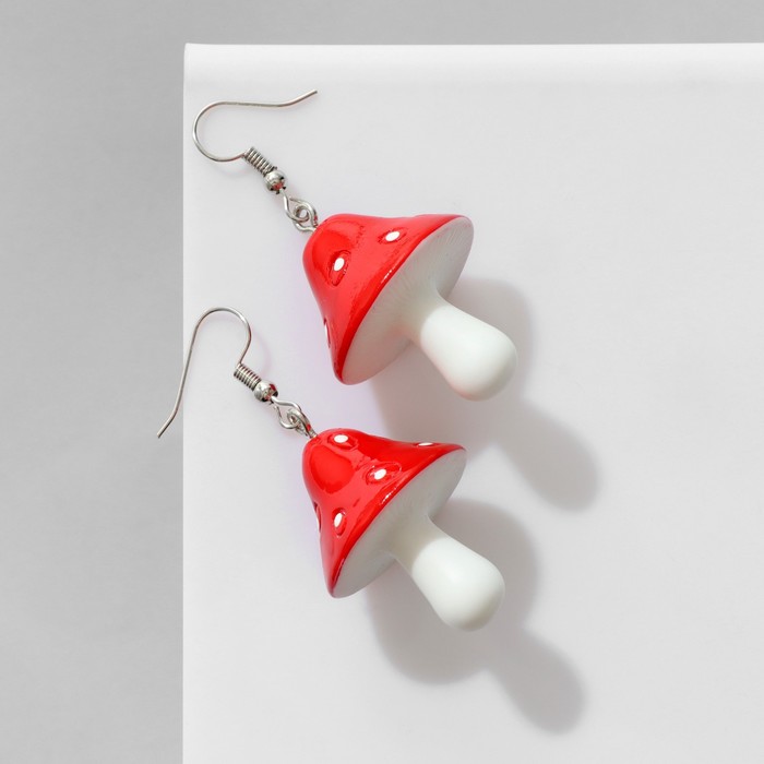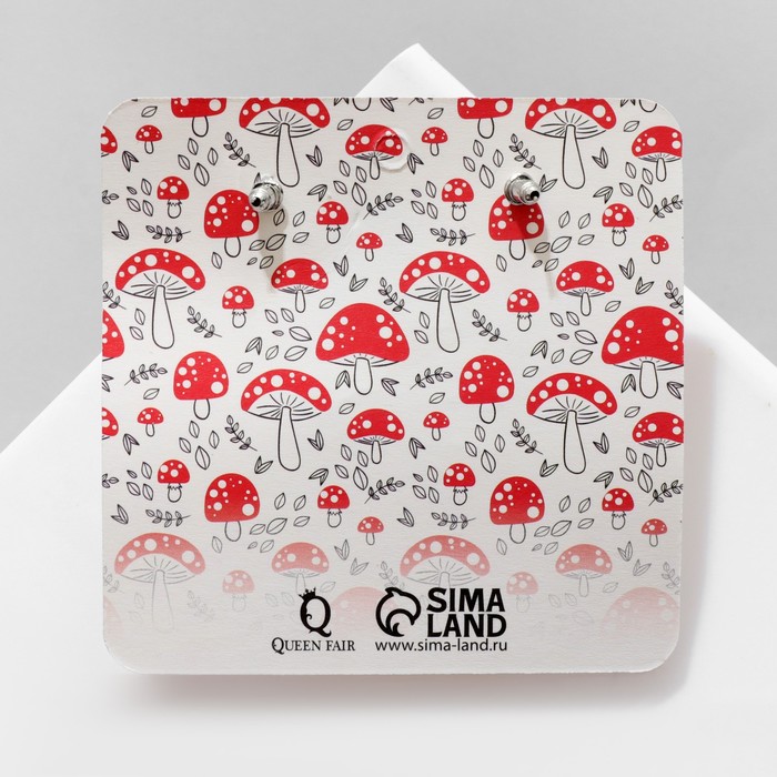 - Яркий дизайн: выразительный красно-белый цвет и узнаваемый образ мухомора делают серьги настоящим украшением.