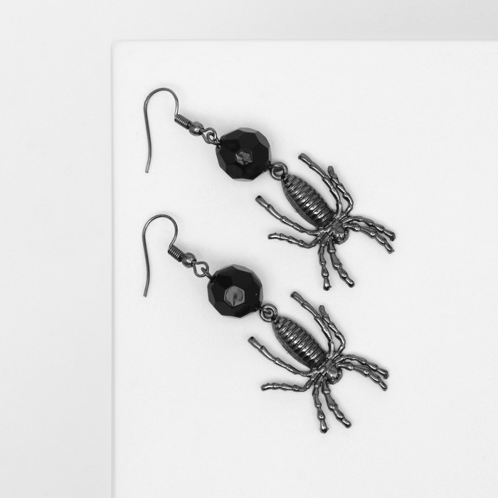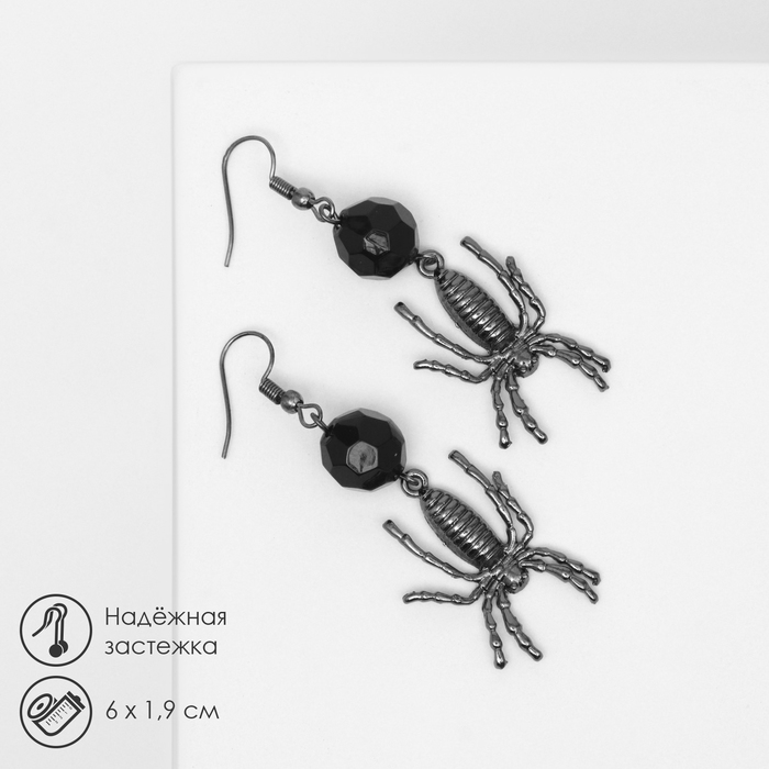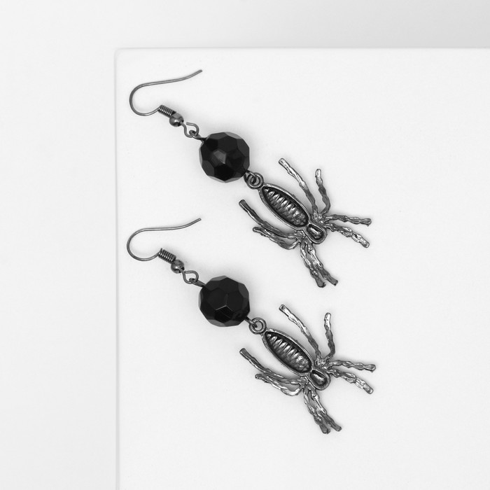 Серьги пластик «Пауки» с бусиной, цвет чёрно-серый в серебре — Характеристики