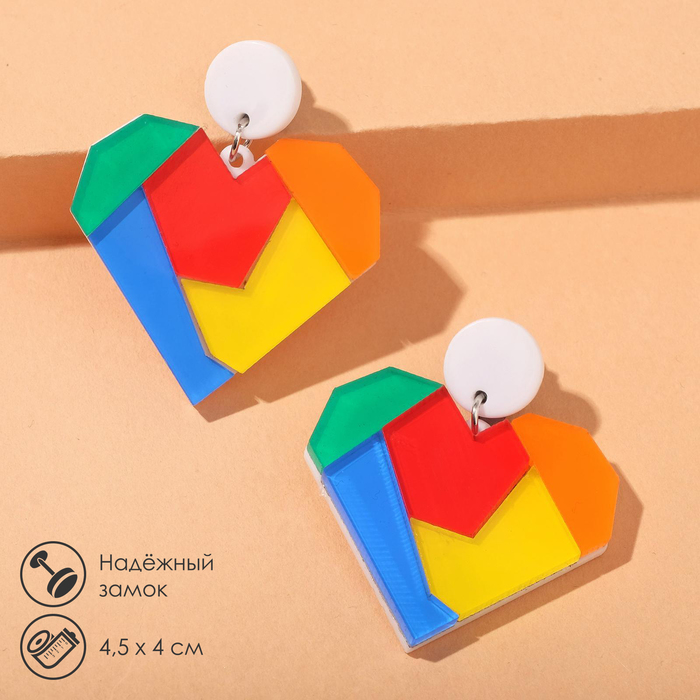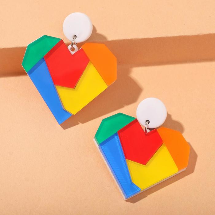 Серьги пластик «Сердечки» кусочки, цветные — Характеристики