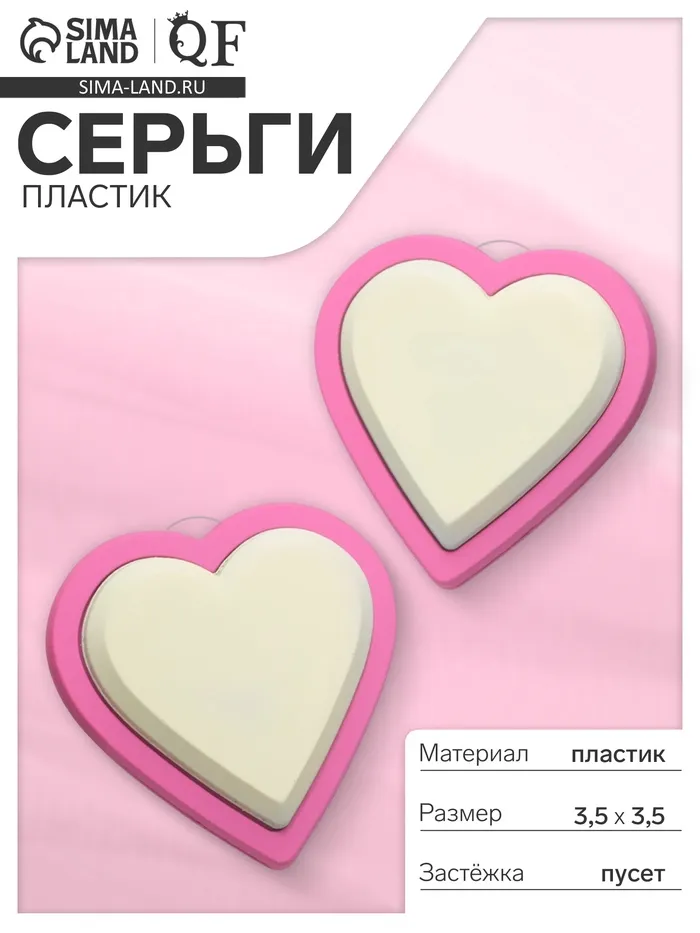 Серьги пластик «Сердечки», цвет бело-бежевый — Характеристики