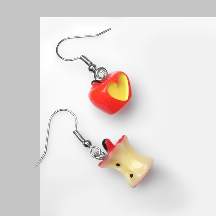 Серьги пластик «Сердце» в яблоке, цвет красно-бежевый в серебре — Характеристики