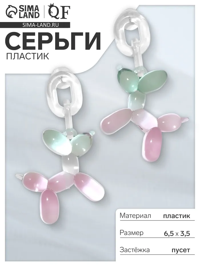 Серьги пластик «Собачка» из воздушного шара, цвет зелёно-фиолетовый — Характеристики