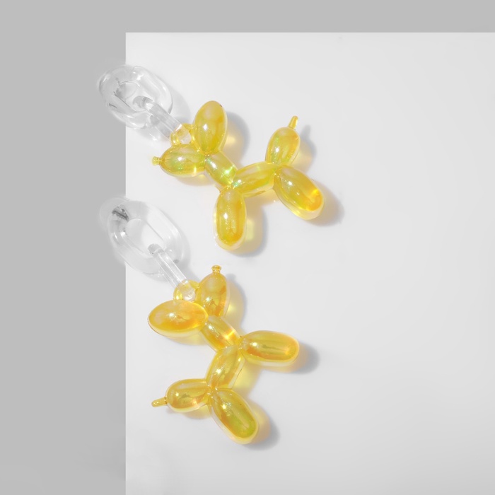 Серьги пластик «Собачка» из воздушного шара, цвет жёлтый
